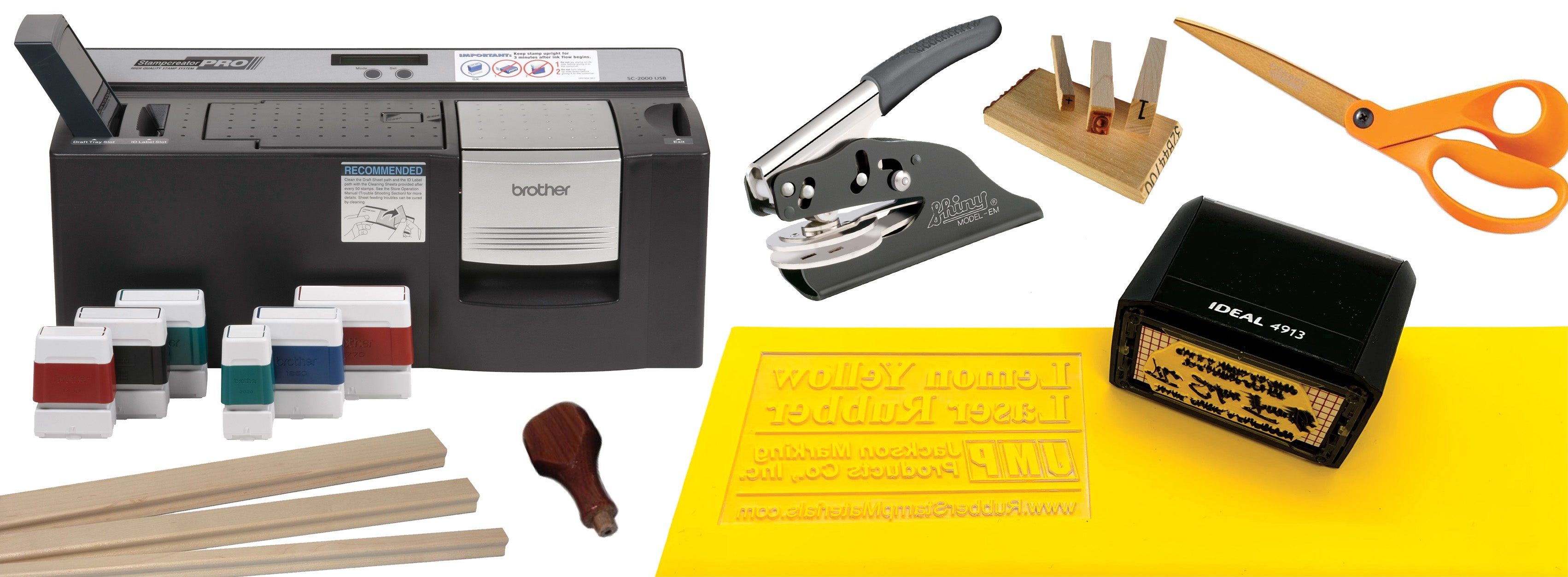 Everything needed to make stamps with rotary and laser engraving equipment!