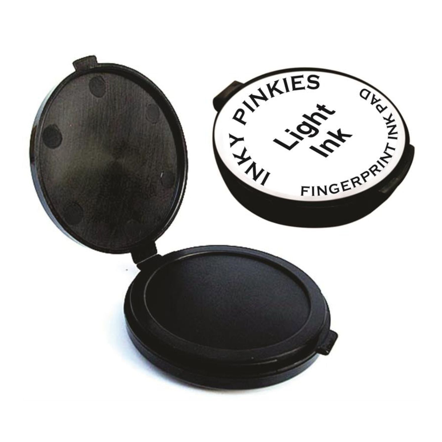 LIGHT INK is very popular with financial institutions. The nontoxic light inkless grade ink is easily removed by simply wiping the fingertips together or using soap and water. Contained in a gray plastic case.