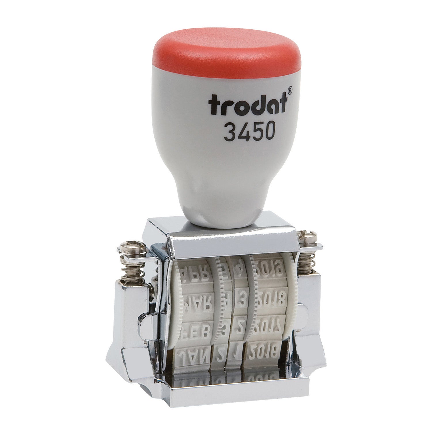 These die plate daters are for stamping in a small space. Die plate is adjustable on 3350 through 3550 for aligning the bands to the thickness of the dies(s), 3110 through 3170 are not adjustable. A special 2-color pad dish is available for use with 3525 and 3550, inking the date set in red and the dies in blue (pad also available uninked for your custom color combination).