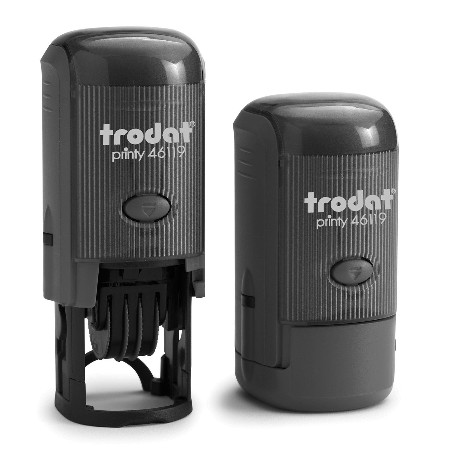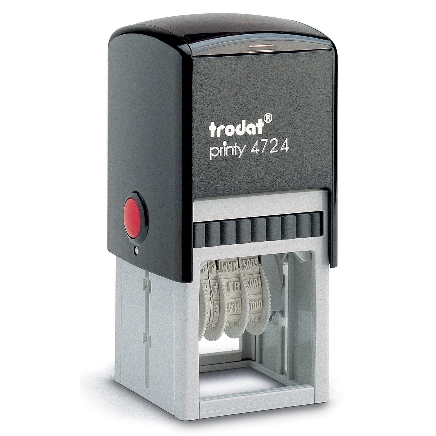 The Printy Self-Inking Daters work and feel as great as they look. Simply attach your rubber or photopolymer stamp dies around the date band set on the self-adhesive die plate. Adjust the date/number set height to perfectly align with your dies using the adjusting screws. In addition to the standard ink colors, some stamps are availabie with 2-color pads - red in the center for the date and blue outside. 2-color pads can be ordered uninked for your custom inking to customer's specifications.