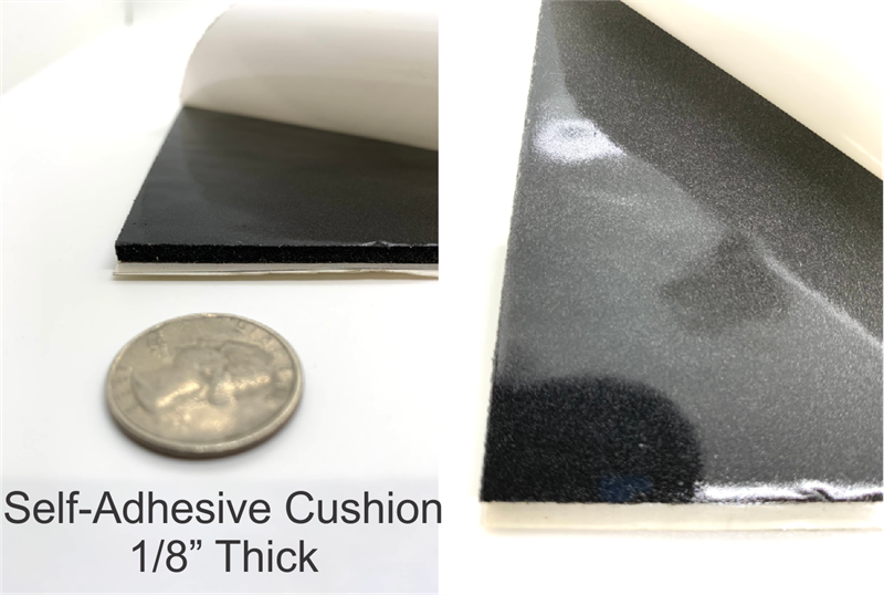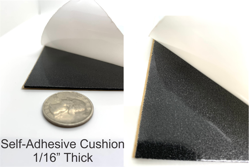 Save time and eliminate the use of cements with our Self-Adhesive Cushion. This black PVC material is just resilient enough for good impressions every time. Not too hard and not too soft! The super sticky adhesive is applied to both sides and covered with waxed paper. Remove the waxed paper to adhere your stamp die to one side, then trim with a die cutter or cutting shears. Adhere the other side directly to your wood, plastic or acrylic mount. 1/16" or 1/8" thickness. Must ship flat, cannot be rolled. Sheet sizes are 12" x 18", 18" x 18" and 18" x 36" (note that 18" x 18" and 18" x 36" will ship at a higher FedEx or UPS "oversize" rate).